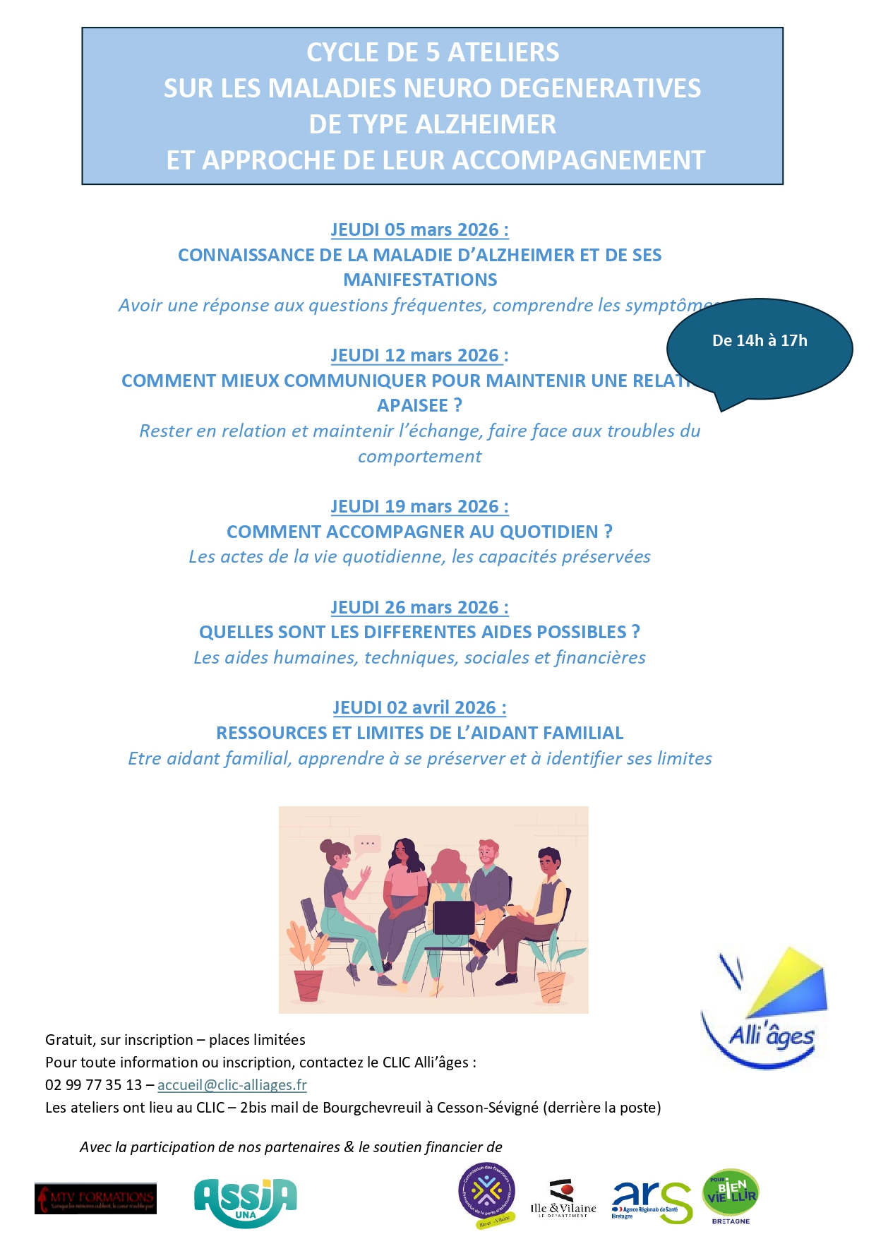 Inscription auprès du CLIC Alli’âges au 02 99 77 35 13 / accueil@clic-alliages.fr